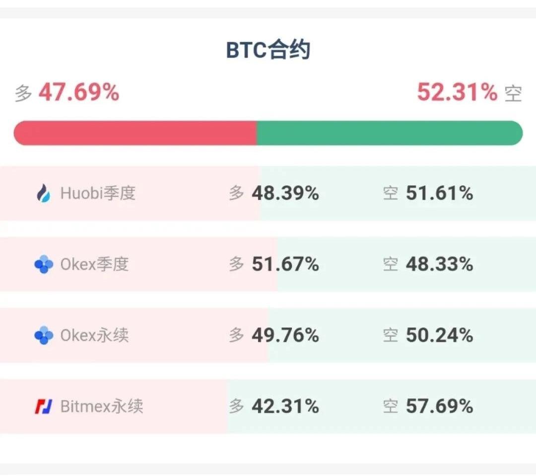 回到行情上,幣coin上的數據顯示當前整體是空頭合約持倉占優,整體也符合當前空頭趨勢,但是越是這樣的表現就要越小心插針。