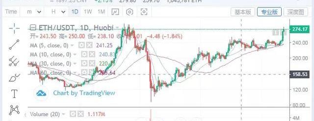 目前ETH直接在挑戰前期高點,270-288的壓力K線區,從目前的市場走勢強度來說,整個市場的題材和動能是足夠的,再加上之前充分地洗盤空間和時間周期,前期288左右的實際壓力其實是很小的,只是市場在這個地方會借市場心理壓力調整一下,一方面是希望有更多的獲利盤離場,同時又要讓更少的人上車,那么調整的幅度不可能大。
