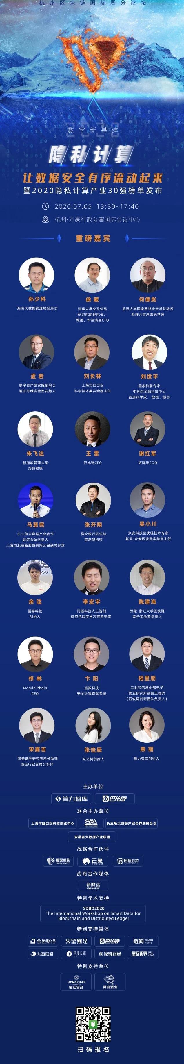 7月5日由杭州市余杭區政府指導的杭州區塊鏈國際周臨近,吸引了海內外大咖集結,千余名業內人士參與。此次活動無疑將成為2020年國內規模最大的綜合性數字經濟盛會。