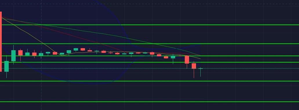 ETH也不除外,前文也是判斷到了行情的大幅跌下跌,目前行情震蕩下行階段,同時行情也到了趨勢線的支撐附近,日線來看行情kdj指標拐頭向下,四小時因為以太坊前期強勢拉升,行情現在回調力度還未到布林帶中軌只是打到了10日線獲得支撐在徘徊,同時macd有拐頭形成死叉跡象,后期同樣關注下支撐破位順勢做空,一小時來看行情布林帶有收口跡象,同時各項指標均成死叉,能量也是逐漸縮小。