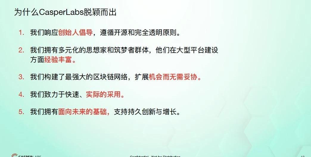 為什么CasperLabs未來會成功?因為我們具有以下幾個優勢:首先團隊一直是由創始人所領導;另外我們的團隊匯聚了多元化背景的人員,在大型平臺建設方面經驗豐富;我們還打造了一個最健壯的區塊鏈網絡,加上了一些我們認為對于企業來說,是否選擇使用區塊鏈非常重要的功能。