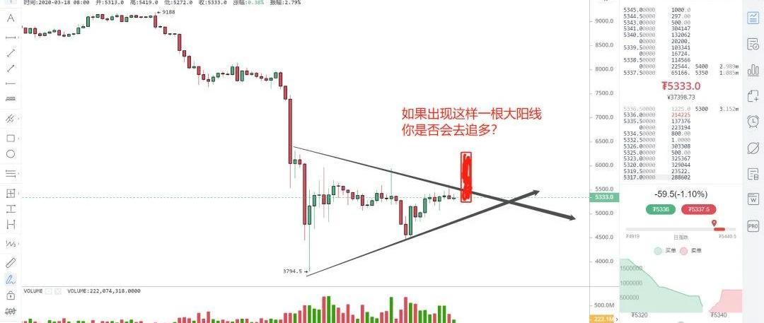 如上圖所示,如果今天價格真的一根大陽線上破了4小時收斂上沿,你是否會選擇忽略4000多點的強大空頭背景,反手去追多,從此期望牛市到來?