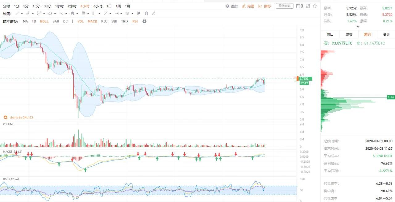 ETC短時回落后再次站上了近期高點,聯動BTC為主。