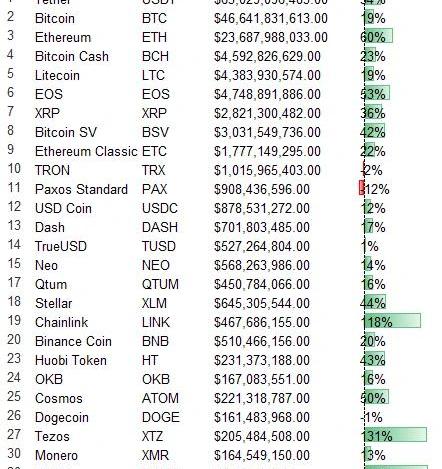 今日市值前100的幣種中,幾乎所有幣種都出現了上漲。主流幣漲幅最大的是ETH,漲幅約16%,遠超于許多二三線主流幣。ETH的暴漲,與之前的超跌有緊密的聯系,表示了這波拉盤市場對ETH以及整個大盤的重新看好。BTC也突破7000壓力位,對大盤的意義重大,表示多頭開始慢慢接管市場。近期多頭最大的主力是礦圈,但目前礦圈解套還有一段距離,多頭還會不斷發力。