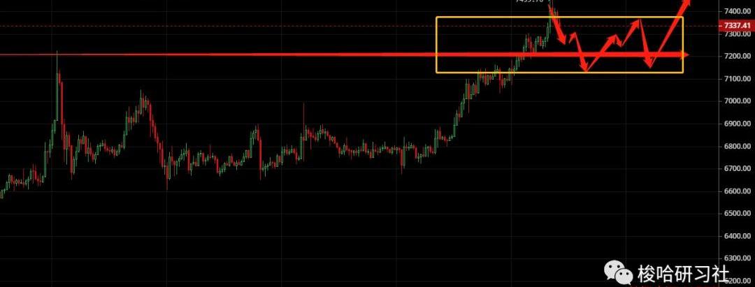 昨日數字貨幣市場直接跟風外盤市場出現大漲,二線晚盤直接補漲,加上這周減半行情,多頭相當強勢,多頭結構仍然強勢,雖然上方空間不大,但沒有空頭信號,操作上還是盡量以回調多為主。7200附近支撐較強,短線不放量砸穿還會反彈前高。