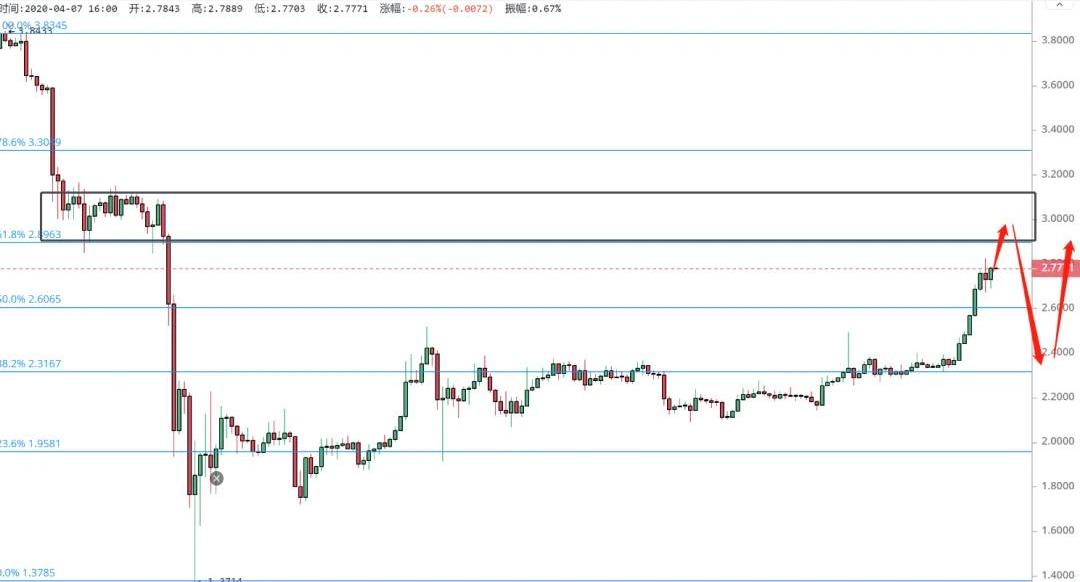 類比ETH,接近壓力區,不要追高,等待2.9以上出現的反轉信號介入做空,下來低多,關鍵壓力:2.9,關鍵支撐:2.67、2.52