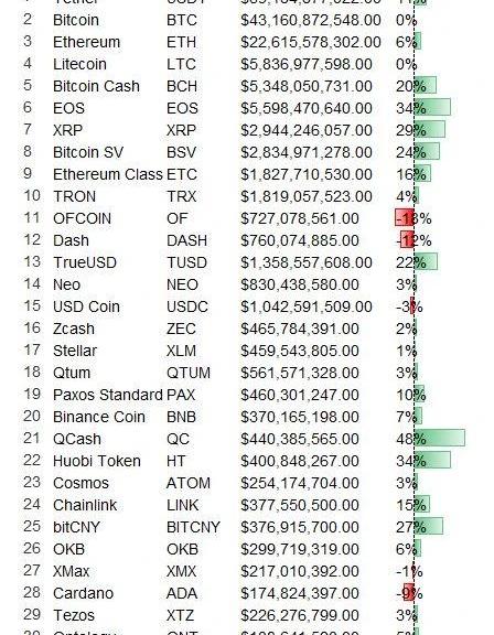 今日市值前100的幣種中,多數幣種在大哥BTC的帶領下大幅下跌。跌幅比較慘的有Algo,前幾天借著牛市拉盤較猛,今天摔得也很慘,跌幅約16%。跌幅較大的主流幣為BSV,近日連續暴跌,跌幅約13%,遠高于其他主流幣的跌幅。除穩定幣外,只有4個幣出現漲幅,且均為小幣種。
