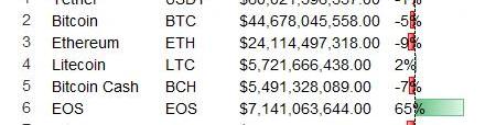 我們來看一下交易量較高的幾個幣種的交易量變化。首先是USDT,雖然今日迎來拉盤,但USDT的交易量變化并不大。其余幾個主流幣交易量也是有所小降。EOS雖然交易量增加,但與其內部原因關聯較大。總的來說雖然今日主流幣都有所上漲,而且是BTC領頭的,但是交易量沒有支撐,屬于紙老虎,如果交易量繼續下降,這波拉盤很可能會宣告失敗。