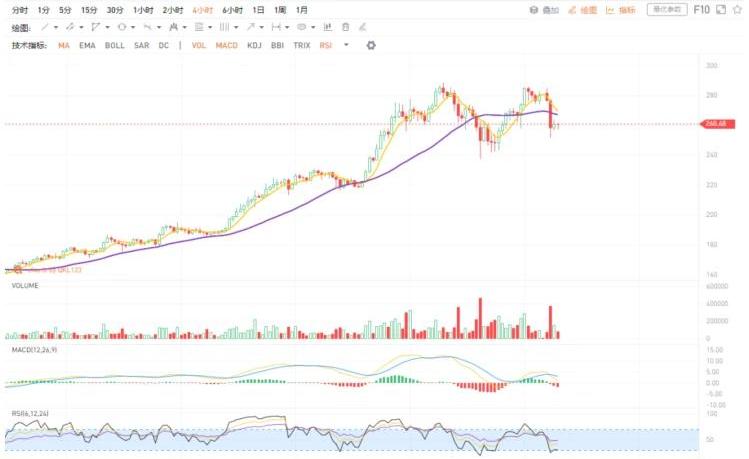與BTC走勢不同的是,ETH并未跌破前低,走勢延五日線呈收斂態勢。跌幅雖然稍微大于BTC,但走勢卻相對強一些,短時繼續震蕩收斂的可能性較大。
