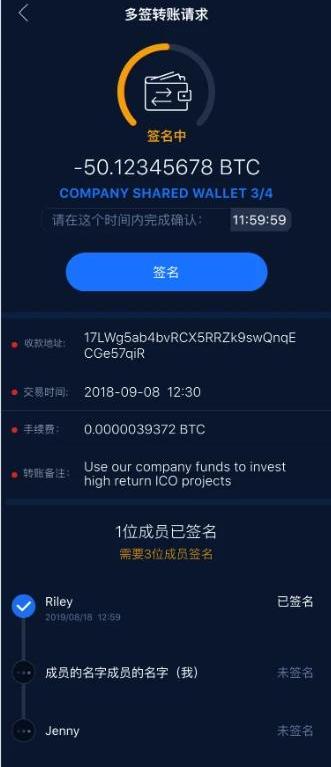 10、成員簽名:創建交易后,其他成員將收到簽名提醒。