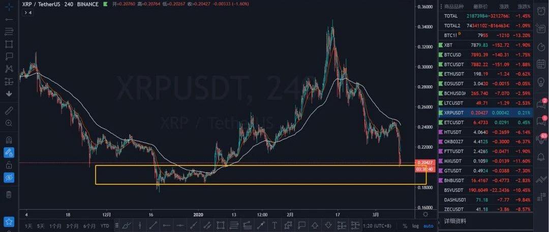 基本已經回到了本輪起漲點,不要據此開多,反彈做空,如果不反彈,打開均線,沿著均線快線做空就行,關鍵支撐:0.183,關鍵壓力:0.22