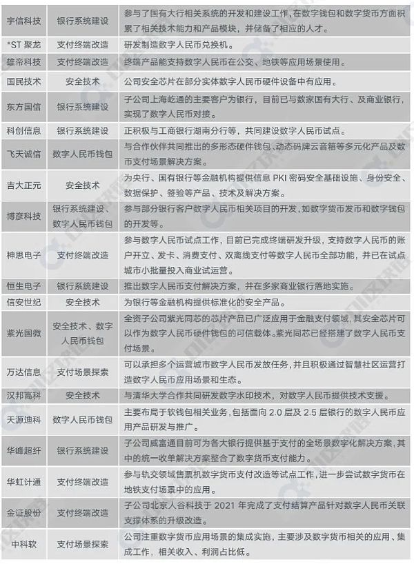 其中,對于相關技術服務商而言,數字人民幣的應用為安全加密企業、銀行IT服務商以及POS機、ATM機、錢包等相關智能硬件和軟件廠商帶來新的增量市場空間。