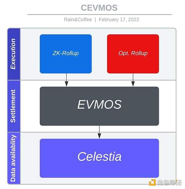 另一件事是Celestia和Evmos之間的合作關系,這將允許基于EVM的應用程序的模塊化堆棧使用Celestia作為數據可用性層。這將使基于EVM的高效Rollup能夠在Cosmos Hub中運行,并具有令人難以置信的可擴展性和安全性。?