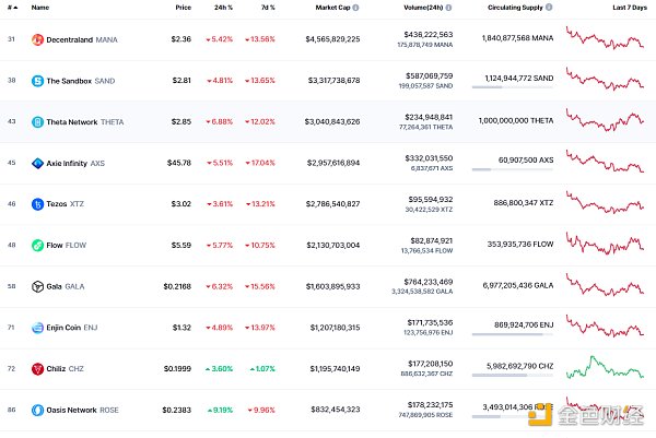 NFT總市值、市值排名前十項目 數據來源:coinmarketcap