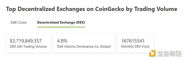 2.過去24小時去中心化交易所的交易量:37.19億美元