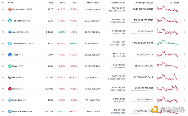 NFT總市值、市值排名前十項目 數據來源:coinmarketcap