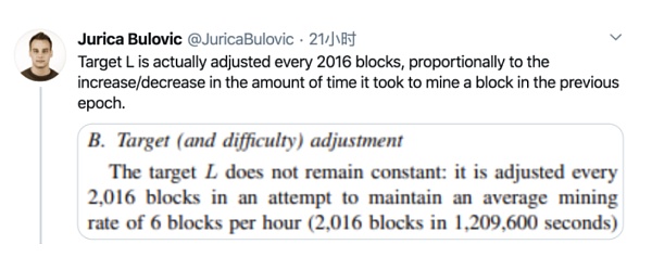 實際上,目標值 L 會在每 2016 個區塊被開采之后調整一次,與上一個時期開采一個區塊所需的時間增加 / 減少成比例。
