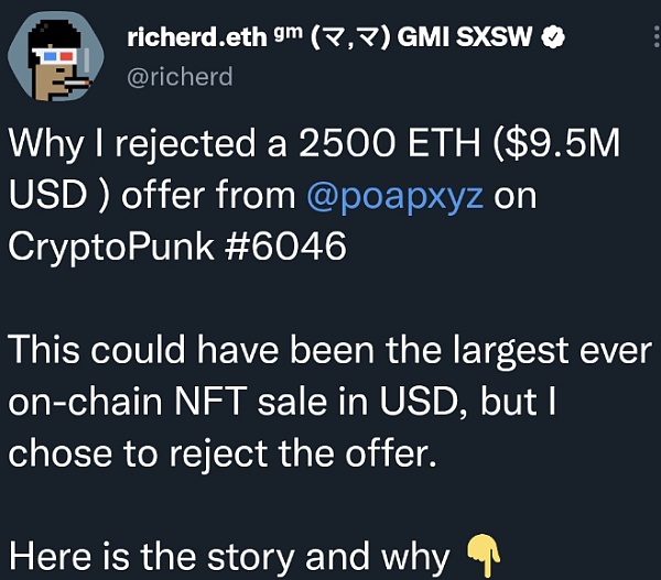 靈魂綁定的概念如果用到 NFT 上, 那么 NFT 就是無法轉讓的. (實際上, 對于一些人來說, 某些 NFT 已經是他們的靈魂綁定之物了, 比如 richerd.eth 就說自己無論如何也不會賣 CryptoPunk #6046, 這已經是他的 identity 的一部分了, 可以詳細看這個 Thread)