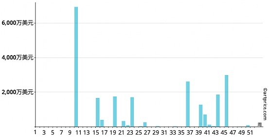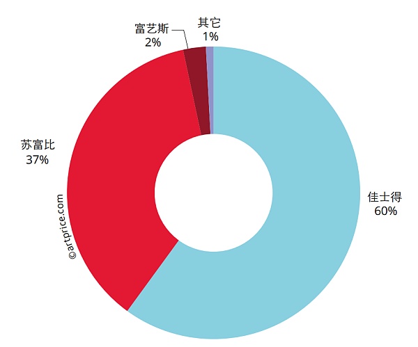 從占比圖可知,佳士得在NFT藝術拍賣中遙遙領先,就成交量而言,蘇富比(114件)比佳士得(80件)多出34件,總成交額更達到8,600萬美元,而佳士得在NFT市場亦收獲1.4億美元左右。2021年,富藝斯共售出19件NFT藝術作品,攬金530萬美元。