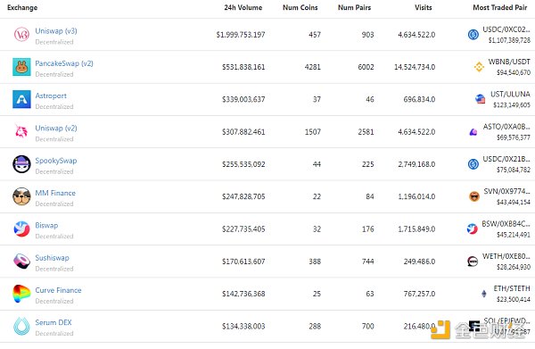 過去24小時去中心化交易所的交易量 數據來源:coingecko