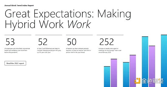 XRP/HKD-0.41%日前,微軟發布了新一期全球職場趨勢報告《Great Expectations: Making Hybrid Work Work》,其中重點分析了未來辦公的場景轉換,報告指出越來越多的人體驗到靈活工作的好處。