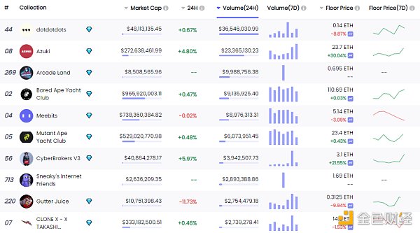 24小時內銷售漲幅前十的NFT 數據來源:NFTGO