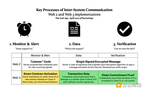 在Web 3中,需要通知自動運行的智能合約有什么事情發生了。當前的解決方案依賴于需要驗證兩條鏈的節點——“中繼器” 。我們將在下一節討論它們的作用。