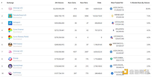 過去24小時去中心化交易所的交易量 數據來源:coingecko