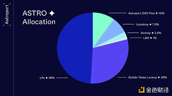 代幣分配的設計方式確保了Terra 社區擁有發言權。鎖定后,社區手中將有 1.1 億 ASTRO(占總供應量的 11%),另外還有 49% 的供應將在 69 年內分配給 Astroport LP。10% 的供應預留給 Astral Assembly(又名 Astroport DAO)。其余的分配給擁有 3 年鎖定期的 Astroport建設者。