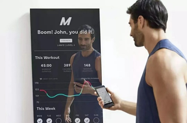 作為美國健身鏡巨頭公司的Mirror,有著“交互內容管理”的系統優勢,并內置AI動態識別攝像頭和傳感器,利用運動算法系統高效分析使用者的動作。其更出色的是,實現了把教練放在鏡子上線上教學,給以消費者更好的體驗感。