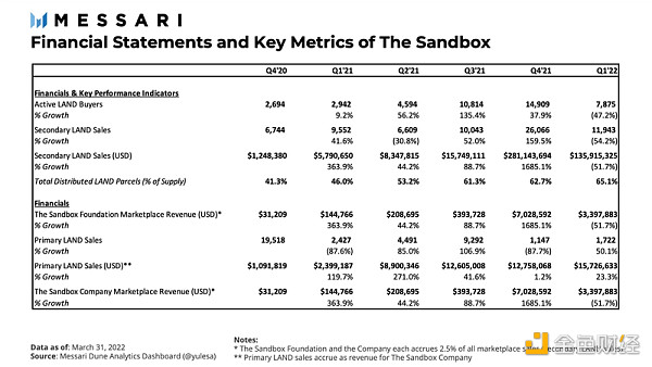 與此同時,相對于 2021 年第二季度,初級 LAND 銷售增長了 23%。初級銷售的對象是新發行的 LAND 地塊,通常出售給合作伙伴或通過拍賣。盡管如此,2021 年第一季度,主要 LAND 銷售額(1600 萬美元)僅占市場 LAND 總銷售額(1.36 億美元)的 12%。