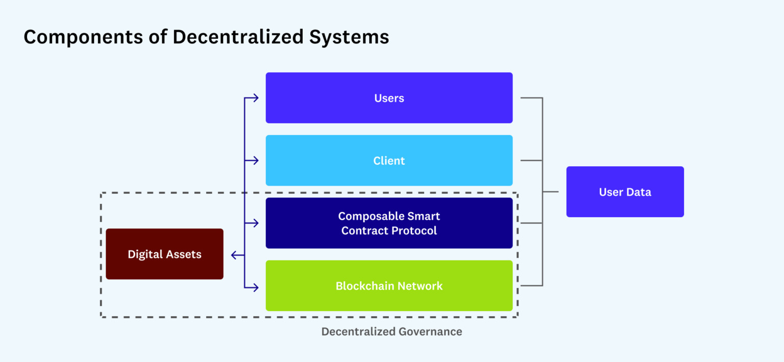 技術上的去中心化主要與 Web3 系統的安全和結構機制有關。可編程區塊鏈背后的核心創新是,它們可以通過提供一個無需許可、無需許信任和可驗證的生態系統來支持技術上的去中心化,在這個生態系統中,價值可以被轉移,更重要的是,Web3 產品和服務可以在此基礎上建立。