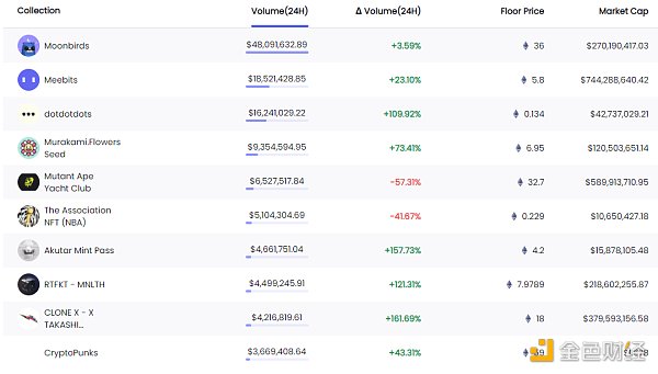 24小時內銷售漲幅前十的NFT 數據來源:NFTGO