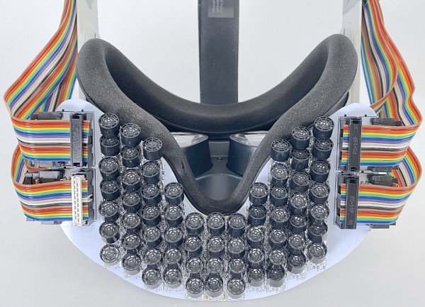 他們在VR頭顯的底部,安裝了一個定制的PCB,上面有64個40kHz超聲波傳感器,可以以45°的角度面向用戶的嘴部。