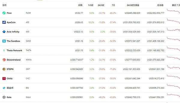 據Coingecko最新數據顯示,截至2022年5月12日,NFT總市值約為169億美元,日交易量超110億美元。市場排名前三的NFT分別為Flow、ApeCoin、Axie Infinity,均為數十億美元。