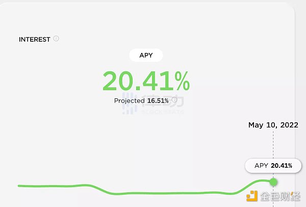 而作為 UST 最大的「兜底人」,Anchor 里存款只剩下 70 億美元,這意味著還有 70 億美元的 UST 在外「流離失所」,隨時可能會被拋售。為了吸收市場上流通的 UST,Anchor 的 APY 也再次罕見地被調升至 20% 以上。