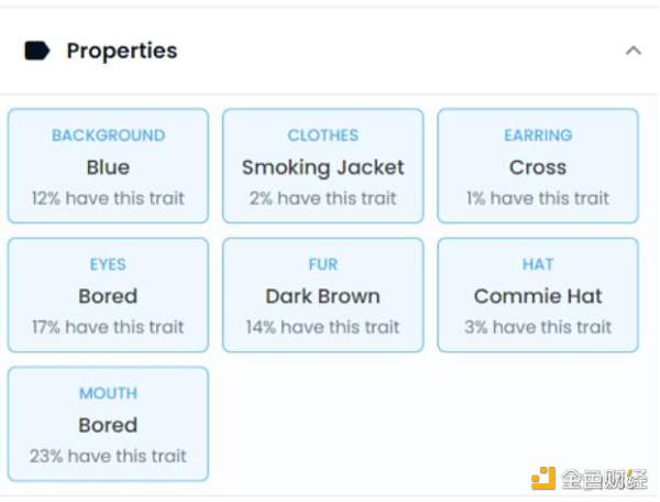 和 GameFi 中角色屬性具有不同構成一樣,NFT 的細節也由不同的屬性組成。比如 BAYC 的 NFT,就包括背景、衣著、耳飾、眼睛、毛發、帽子和嘴七個不同的屬性,而屬性的稀有度實際就決定了該 NFT 的價值。對于稀有度分配和屬性總量上限的制定,都可以通過利用可信隨機數來解決。