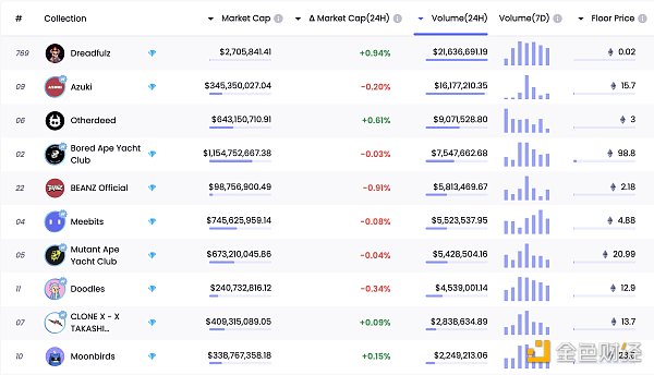 24小時內銷售漲幅前十的NFT 數據來源:NFTGO