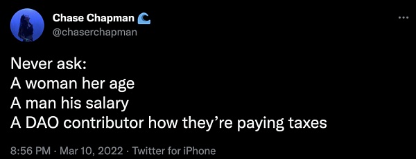 在 DAO 出現之前,DAO 中的稅收就已經是一個討論的話題了——看看七年前的這個 Reddit 主題帖就知道了。但是,當涉及到稅收時,現實世界的真實情況開始悄然出現。