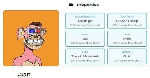 需要考慮的屬性或特征通常是物理屬性,如衣服、耳環、毛皮、帽子、眼鏡、背景、項鏈等,這些被用作衡量標準的原因是因為單個集合中的所有NFT不可能同時擁有全部屬性;這使得它們不可替代。