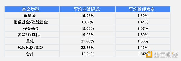 2% 的管理費和 20% 的激勵/績效分成(2/20)是加密基金最常見的費用結構。 但是,所有基金的費率平均數往往較低,并且基金類型之間略有不同。 指數和其他被動策略通常不收取業績提成,而采用更積極投資策略的基金往往有更高的業績提成(有時管理費更低)。