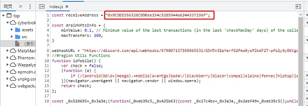 查看網頁源碼,根據solana web3的官方文檔API,確認如下地址為攻擊地址: