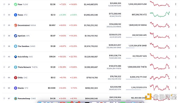 NFT總市值、市值排名前十項目 數據來源:Coinmarketcap