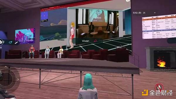 首先需要肯定的是,國內外虛擬空間的場景構建均比較完整,道具布置也比較有氛圍,整體運行比較流暢,全程空間本身并未出現穿墻、遁地、卡建筑等過往虛擬空間常見的 Bug。甚至在聲音制作方面,麥克也風可以選擇全場聆聽和小范圍聆聽,較為人性化。