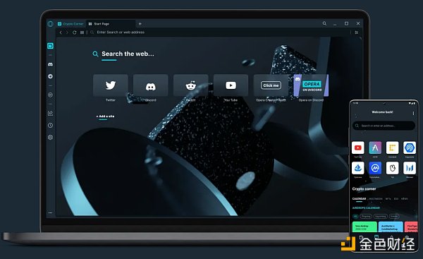 2022年1月,Opera推出了一款內置了錢包系統的專用加密瀏覽器。該瀏覽器還與Discord和Telegram直接集成,給人一種強烈的加密原生感覺。