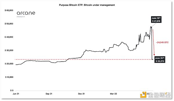 Purpose Bitcoin ETF 管理的 BTC 數量腰斬