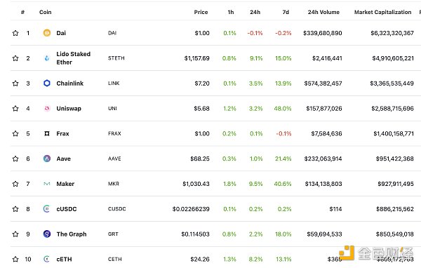 DeFi項目鎖定資產前十排名及鎖倉量 數據來源:defillama