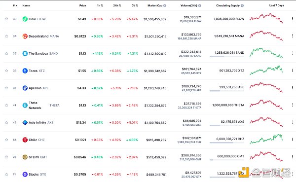 NFT總市值、市值排名前十項目 數據來源:Coinmarketcap