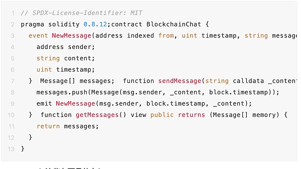 回到我們的智能合約。正如你所看到的,當用戶發布一條消息時,會觸發一個事件: