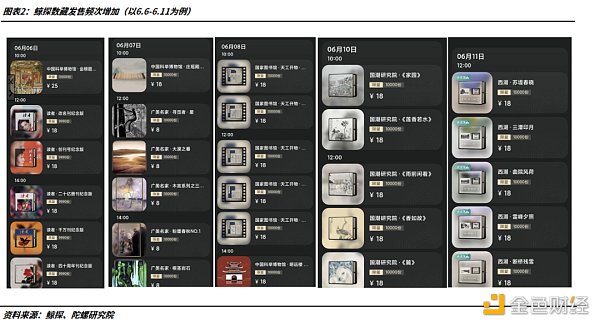 此外,伴隨《關于推進實施國家文化數字化戰略的意見》印發,其中明確提出文化產權交易機構要充分發揮在場、在線交易平臺優勢,推動標識解析與區塊鏈、大數據等技術融合創新,為文化資源數據和文化數字內容的確權、評估、匹配、交易、分發等提供專業服務。在監管收緊的趨勢下,眾多文化產權交易所也成為了數字藏品合規探索的首要途徑,目前,海南國際文化藝術品交易中心、杭州國際數字交易有限公司、山東文化產權交易等均開始試水數字藏品在文創領域的發展。